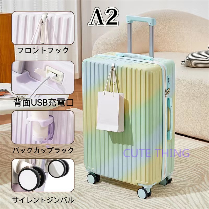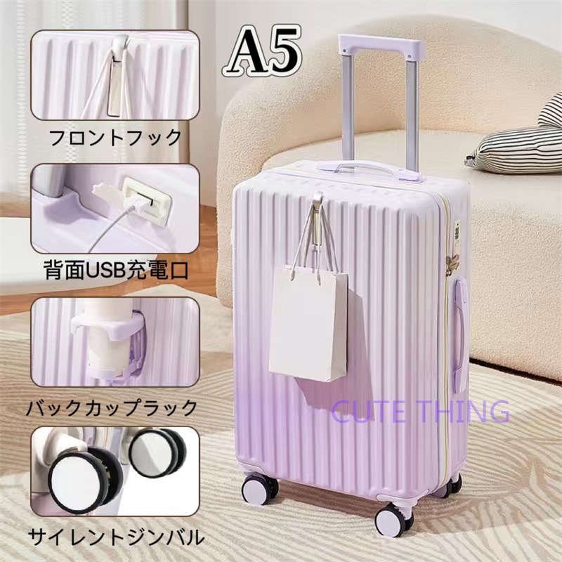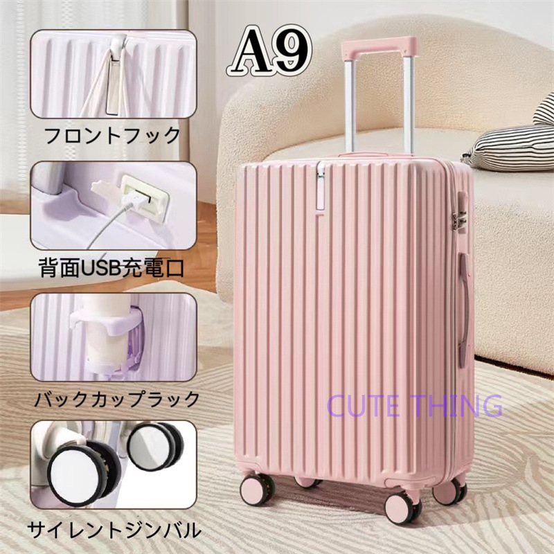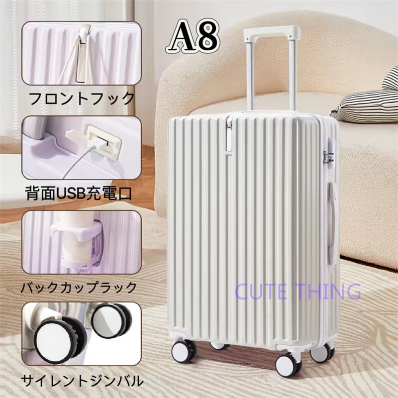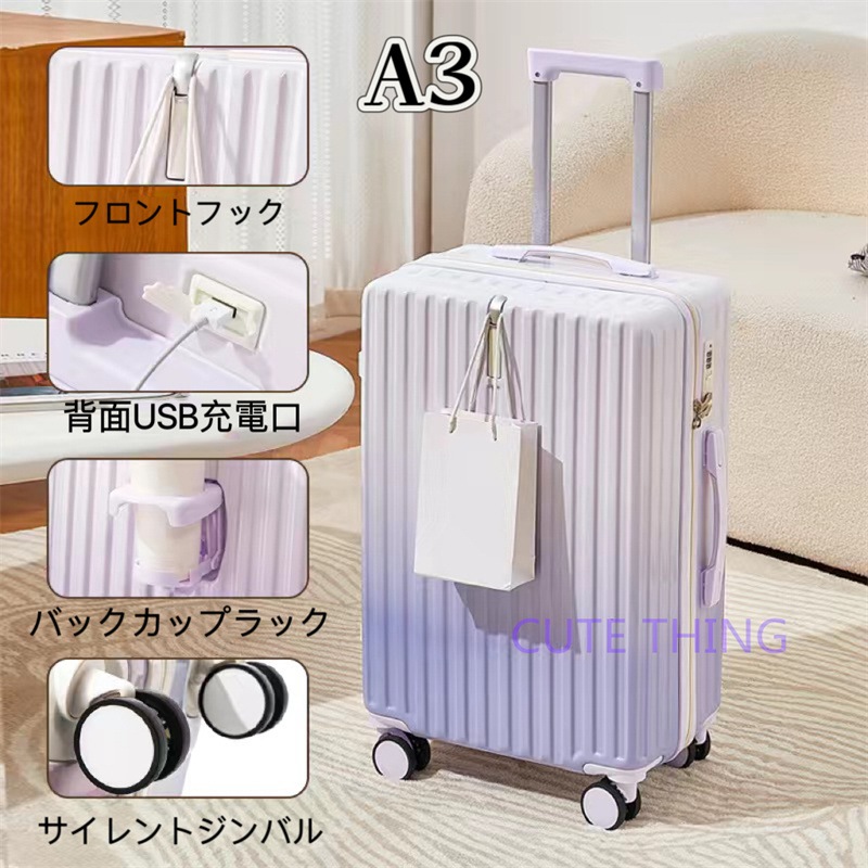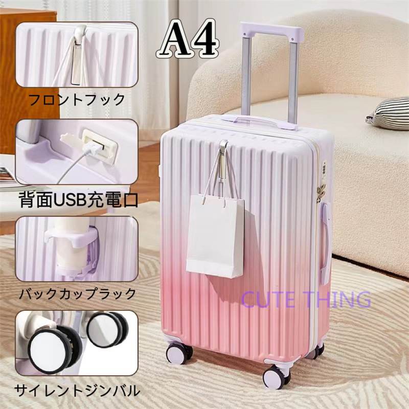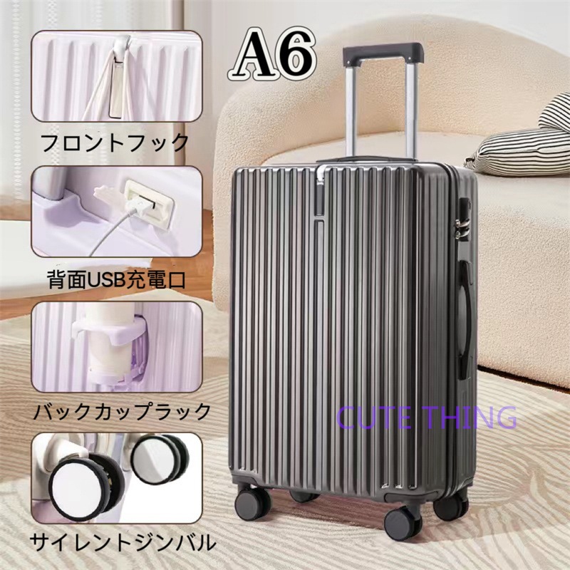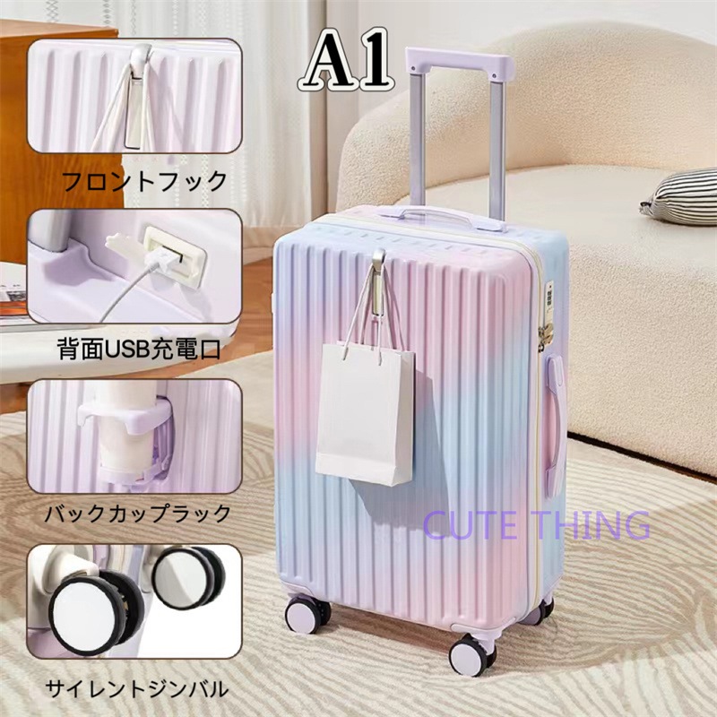 スーツケース 軽量 多機能 静音 USBポート付き カップホルダー フック付き 機内持ち込み 小型 海外出張 修学旅行 おしゃれ
