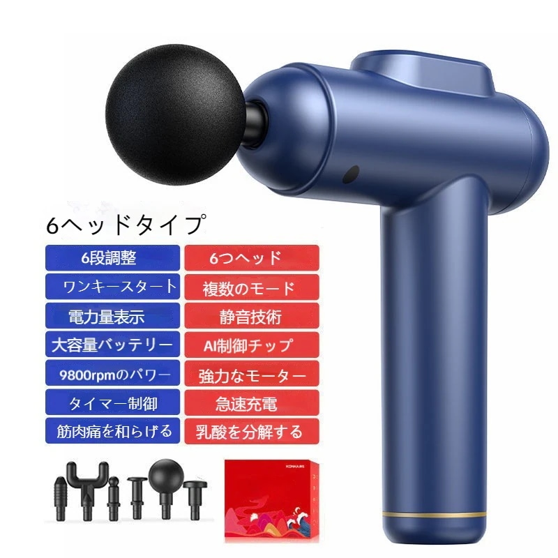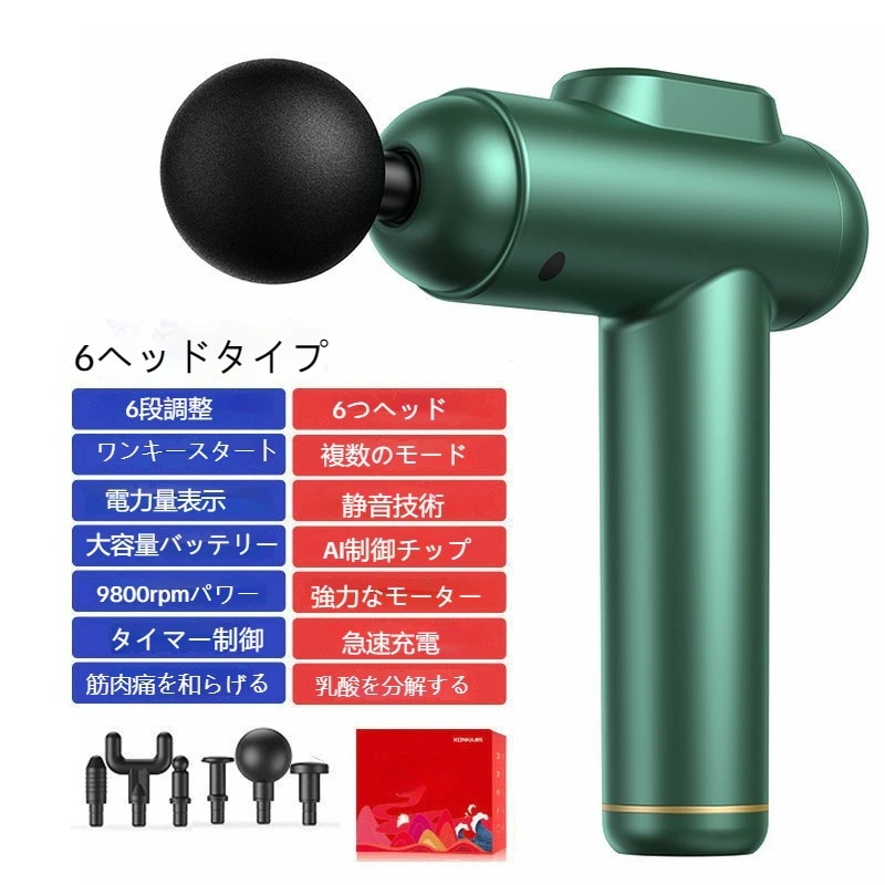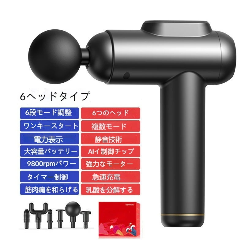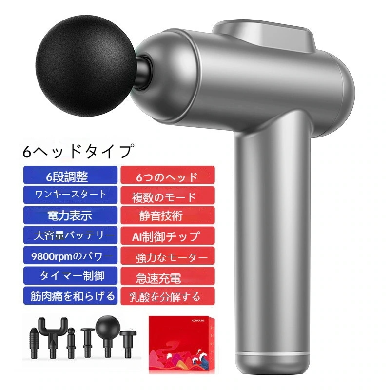 マッサージガン 6段6頭 筋膜 インパクタ 強力振動 筋膜マッサージ器 マッサージ機 リラックス 肩頸椎膜銃 静音 プレゼント
