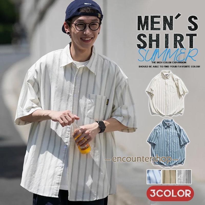 大人気 カジュアルシャツ メンズ 半袖シャツ ストライプ 開襟シャツ カジュアル ビジネス 無地 トップス おしゃれ シンプル 通勤 夏服 ゆったり 父の日