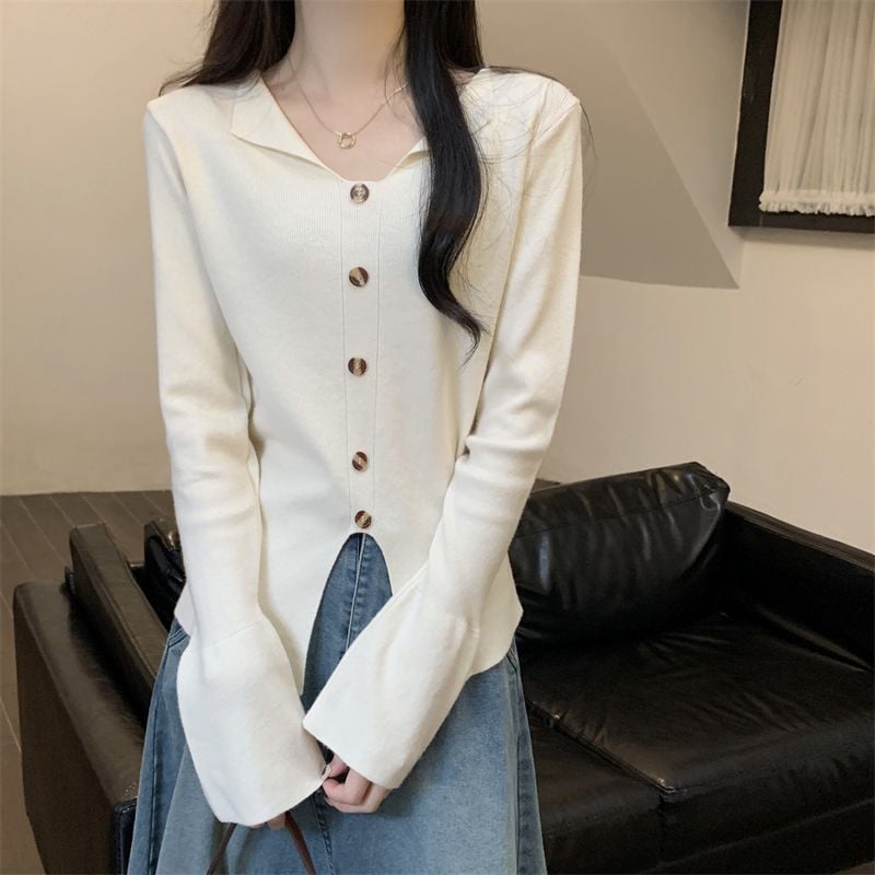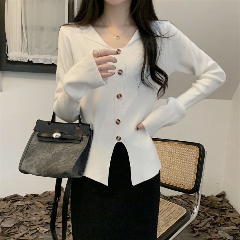 韓国ファッション秋新作ニット流行りVネックベーシックニット ゆったりスウェットトップス長袖ニットトップスシンプル ニット着痩せ