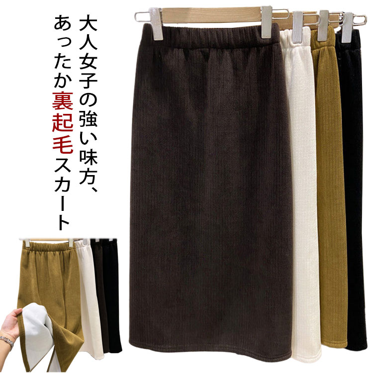 冬 スカート ロング丈 膝下丈 スリット スリット入り Iライン 大きいサイズ 秋冬 通学 裏起毛 暖かい きれいめ カットソー ミモレ丈 ベイカースカート ボトムス レディース カジュアル オフィス