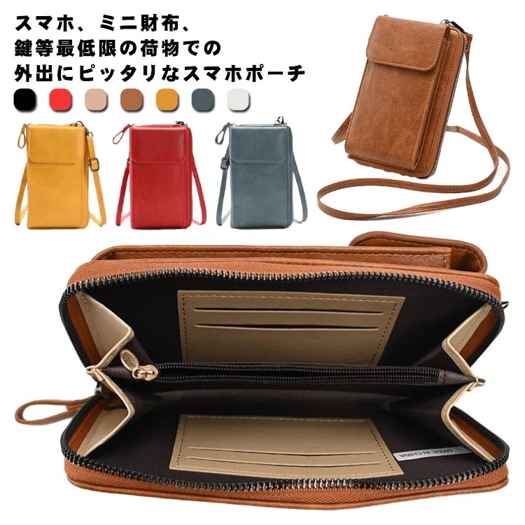 スマホショルダー スマホポーチ スマホケース レディース 財布 定期入れ 縦 全7色 ICカード ポーチ スマホポシェット 斜め掛け 携帯入れ おしゃれ パスケース カード入れ シンプル ミニバッグ