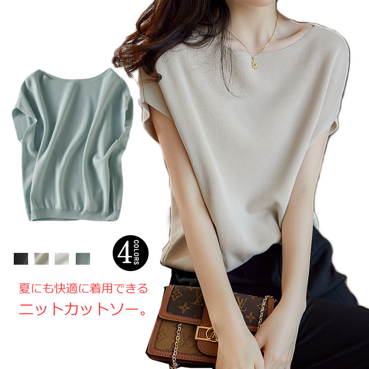 サマーニット トップス カットソー レディース ドルマンスリーブシャツ フレンチスリーブ 半袖 ニットソー リラックス 韓国ファッション ゆったり Tシャツ プルオーバー 春夏