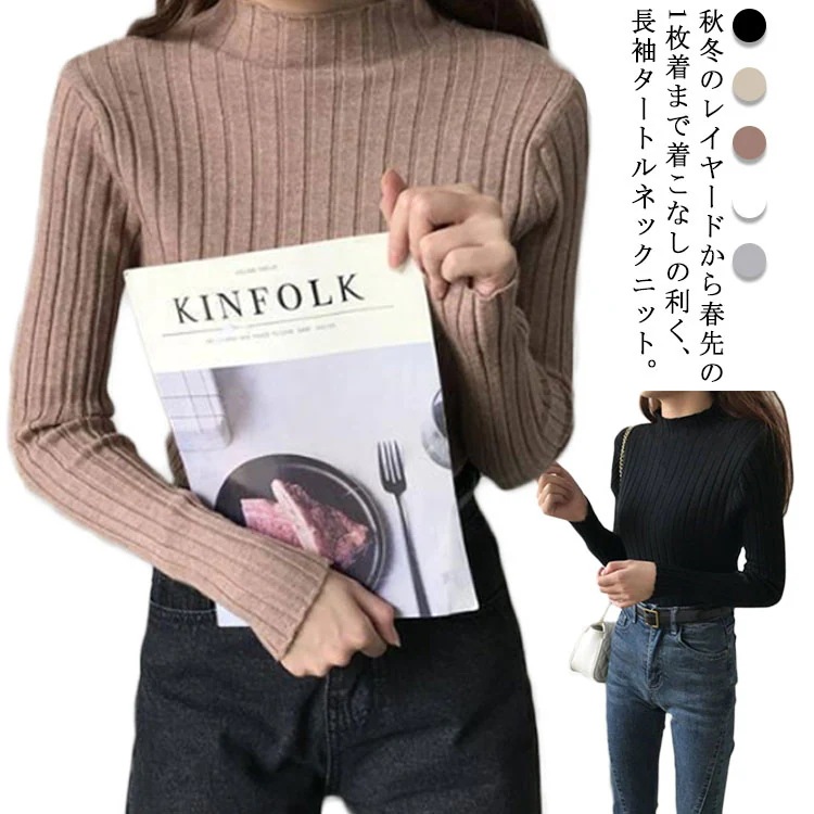 リブニット レディース トップス セーター 無地 インナー レディース ニットトップス 長袖 タートルネック ハイネック 秋冬 シンプル 洗える 細身 着痩せ 着 通勤 通学