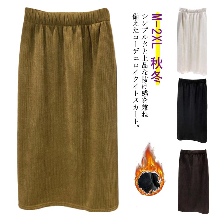 ロングスカート コーデュロイスカート タイトスカート スリットウエストゴム 裏起毛 あったか ぬくぬく ぽかぽか ふわふわ ロング丈 スカート 秋冬 ボトムス 防寒 対策 冬服