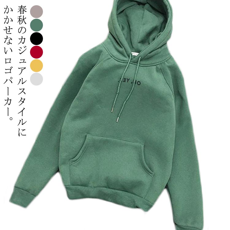 スウェット パーカー レディース 裏起毛 プルオーバーパーカー ロゴ プルオーバー 春秋 トップス 長袖 フード ポケット付き カジュアル 秋 冬 通学 学生 部屋着