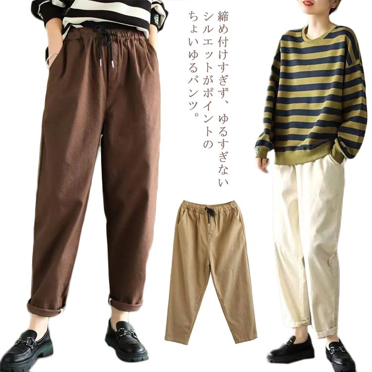ゆるパンツ チノパンツ レディース ボトムス ズボン 長ズボン テーパードパンツ サリエルパンツ カラーパンツ ベイカーパンツ ウエストゴム 大きいサイズ ゆったり ルーズ ストレート ベー