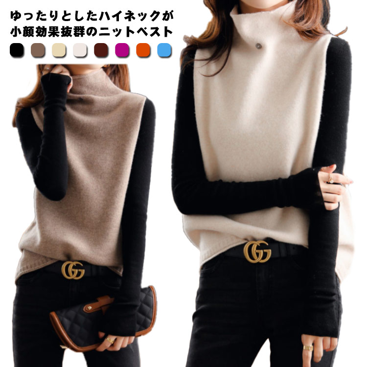 ベスト ニット ニットベスト タートルネック ニットトップス 袖なし プルオーバーノースリーブ レイヤード ゆったり チョッキ セーター 袖なし リブ編み 着痩せ 春 秋 ハイネックベスト
