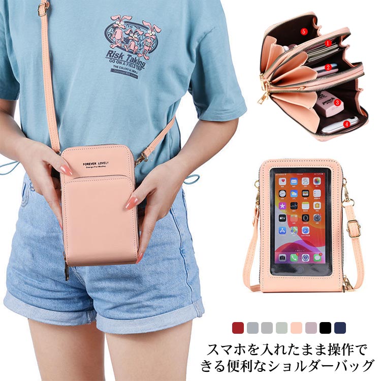 スマホポーチ 入れたまま操作 スマホショルダー お財布 ショルダーポーチ 斜めかけ アイフォン レディース 女性用 軽量 携帯ポーチ 斜めがけ スマホポーチ バッグ ミニバッグ カバン かばん ミニシ