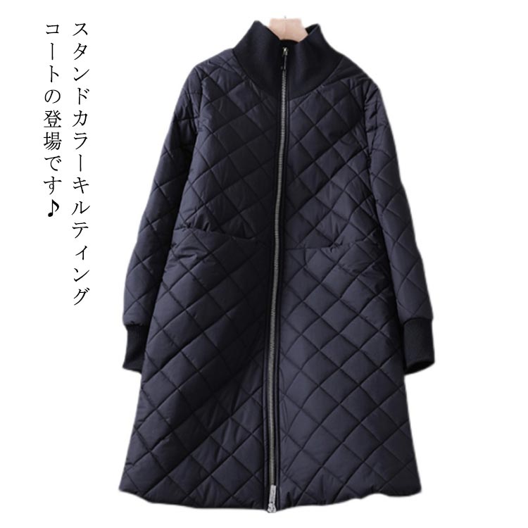 中綿コート レディース 軽い 黒 中綿ジャケット 大きいサイズ キルティングコート レディース アウター 防寒 コート 秋 冬 ハイネック ロング丈コート ベンチコート キルトジャケット
