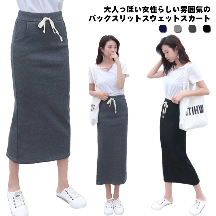 スウェットスカート ロングスカート タイトスカート スカート ミモレ丈 スウェット スカート レディース 膝下丈 美脚 春 夏 秋 スリット入り 膝丈 通勤 カジュアル おしゃれ きれいめ 無地