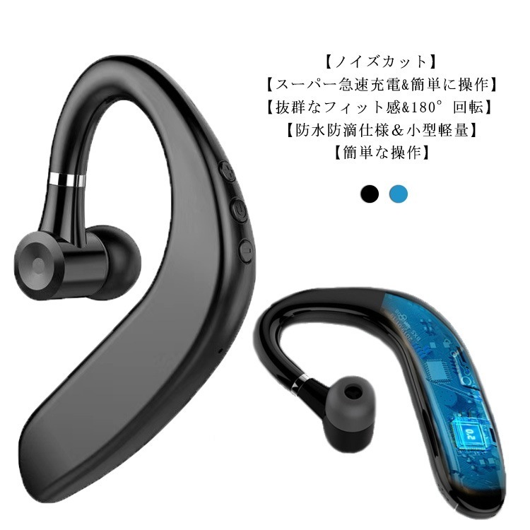 ワイヤレスイヤホン Bluetooth 5.0 左右耳通用 ブルートゥースイヤホン 耳掛け型 ヘッドセット 高音質 マイク内蔵 無痛装着タイプ マイク付き 音量調整 IPX7防水 180B