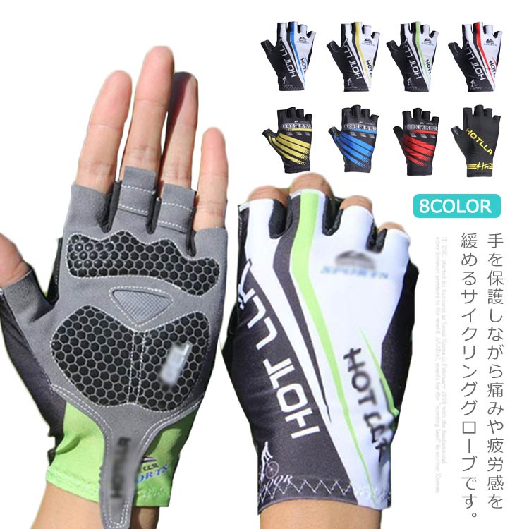 サイクリンググローブ 自転車 手袋 グローブ 指切り 衝撃吸収 滑り止め 通気性 速乾 ストレッチ メンズ レディース 男女兼用 半指 ロードバイク 薄手 サイクルウェア マラソン