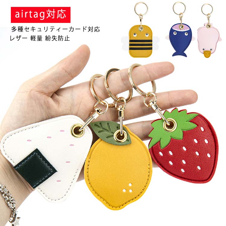 ケース レザー かわいい 保護ケース エアタグ カバー 収納カバー Airtagアクセサリー 便利 軽量 スリム コンパクト セキュリティーカード イチゴ レモン