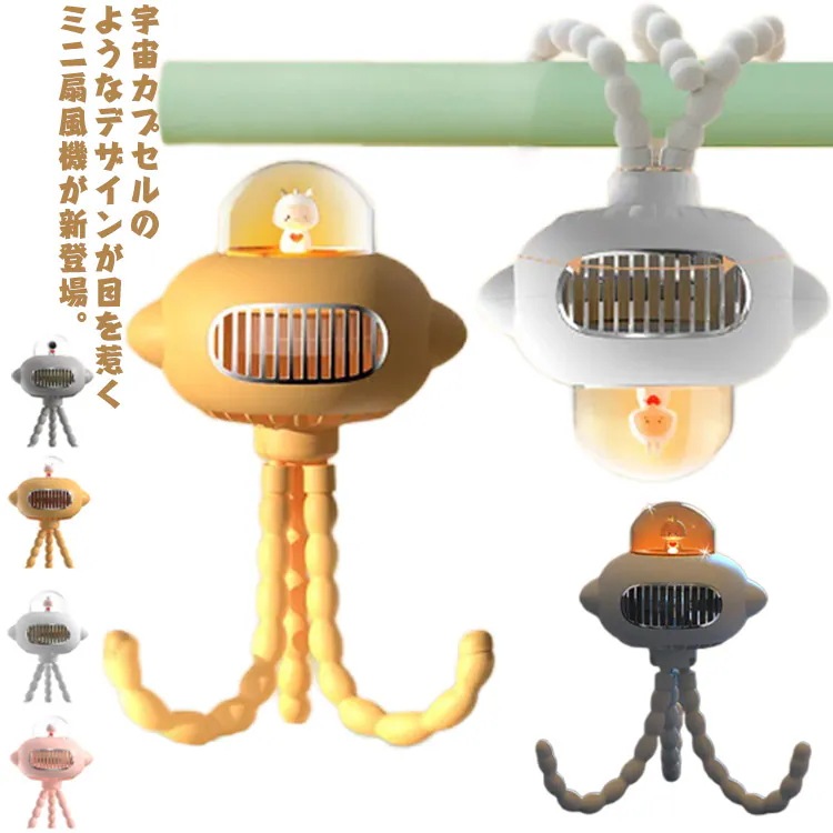 130℃回転!ベビーカー 扇風機 小型 卓上 羽根なし 静音 ミニ扇風機 usbファン 軽量 3段階風量 自然風モード クラゲ式 ハンディファン 卓上 三脚 スタンド 巻き付け 吊り下げ 携帯扇風機