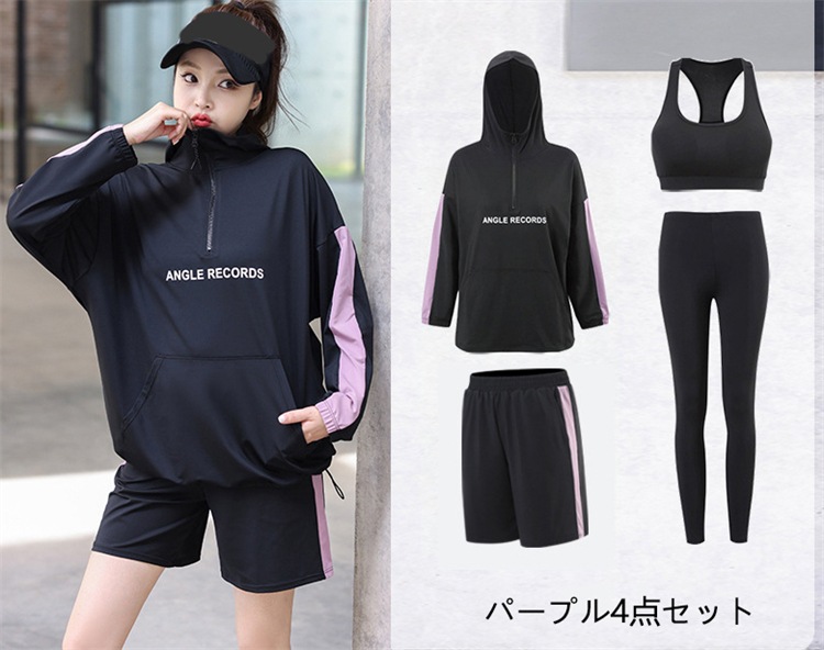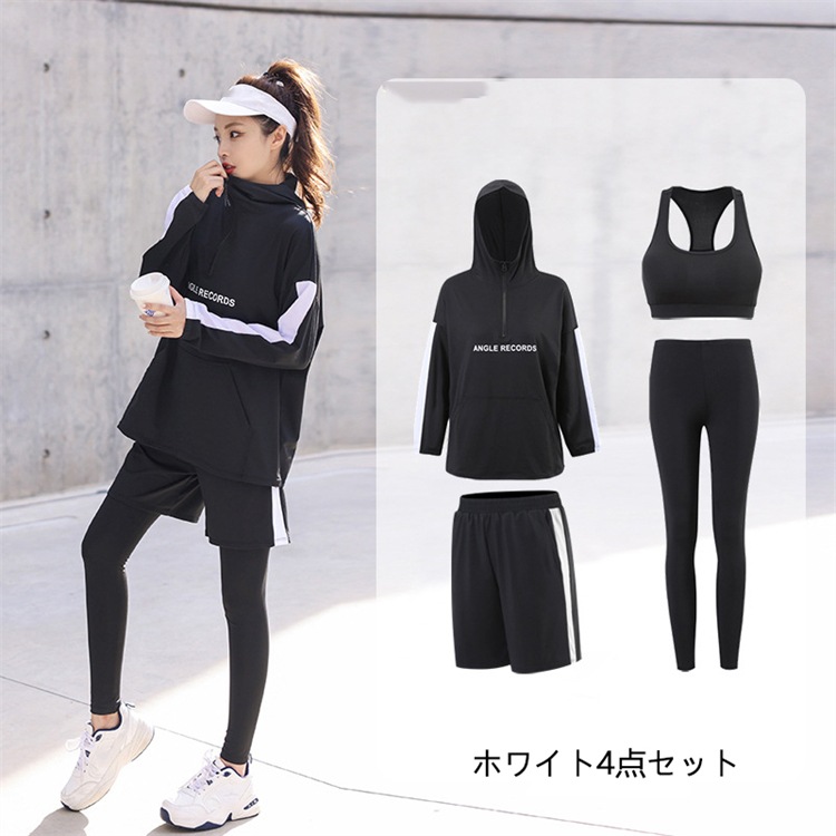 スポーツウェア ヨガウェア 運動服 レディース 長袖 カップ付き 3/4点セット ランニング ピラティス フィットネス 2color 吸汗速乾
