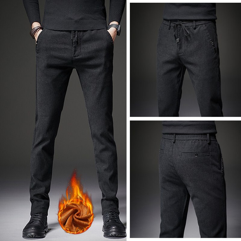 秋冬の新型ストレートゆるいカジュアルパンツ男性ビジネスベルベットオプション男性式純色ズボン男性タイプ