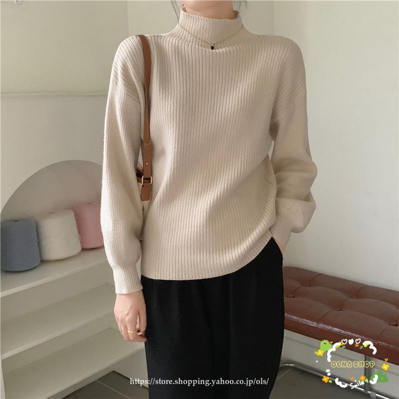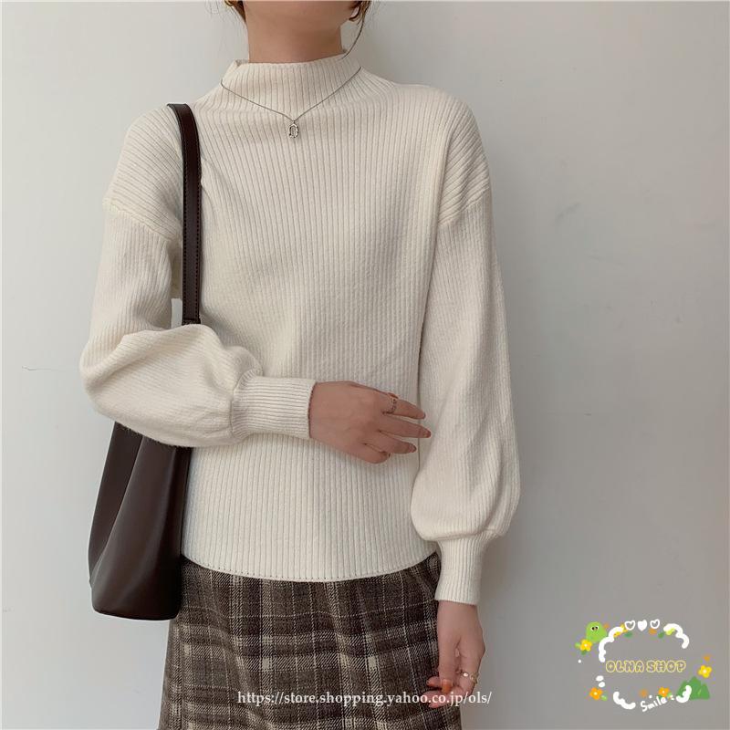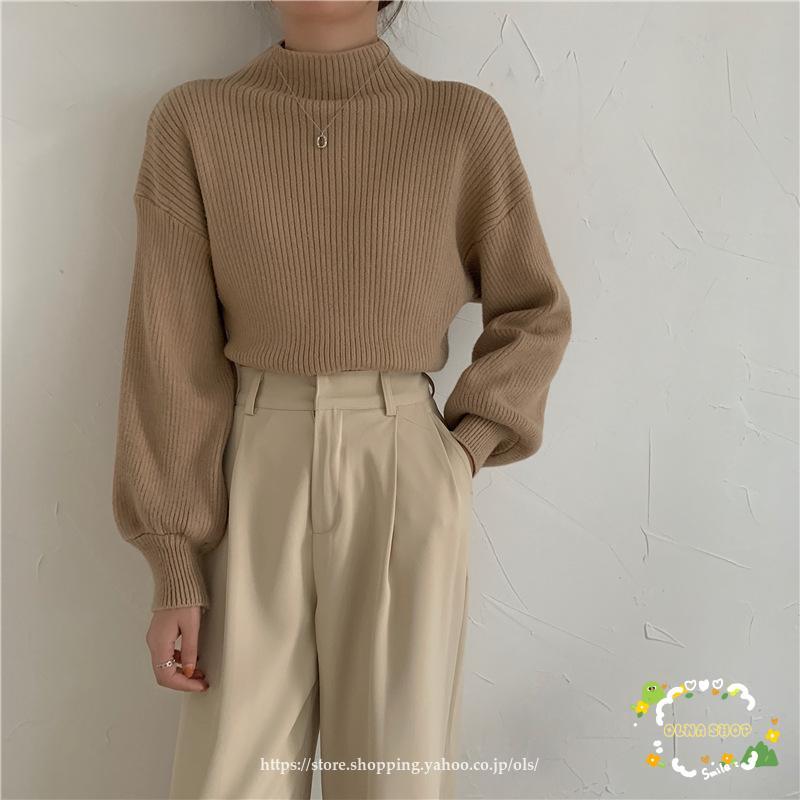 ニット レディース 秋冬 袖トップス ボトルネック ぽわっと バルーン袖 バルーンスリーブ リブニット ボトルネックバルーン袖ニットプルオーバー