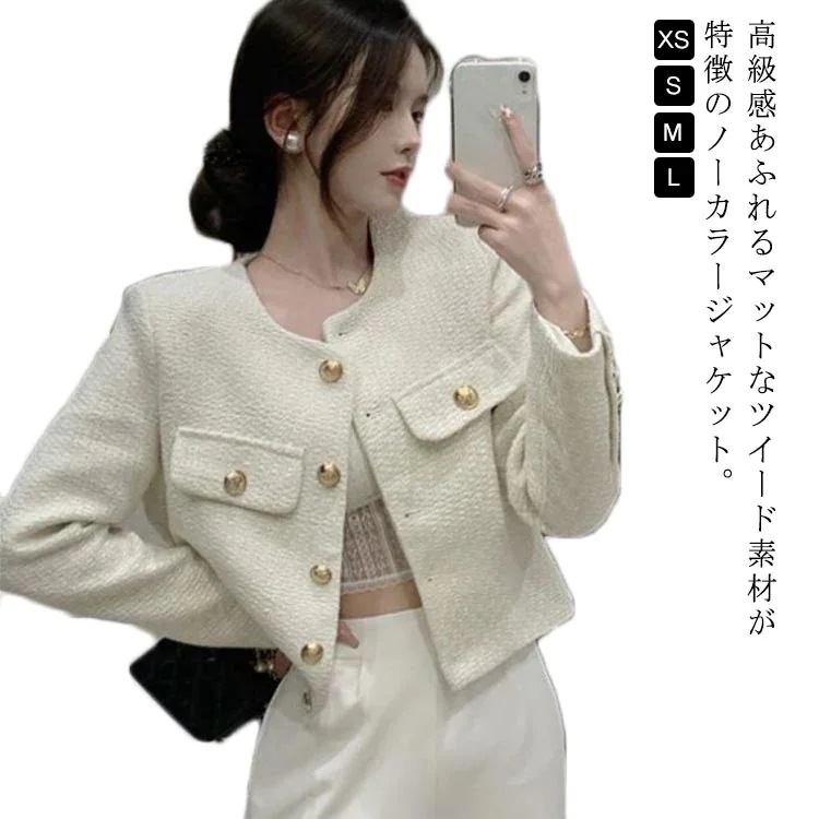 ツイードジャケット ノーカラー ジャケット レディース 長袖 ショート丈 ツイードコート ブルゾン 入園式 卒園式 アウター フォーマル ママスーツ 結婚式 母親 母 エレガント おしゃれ フォーマル