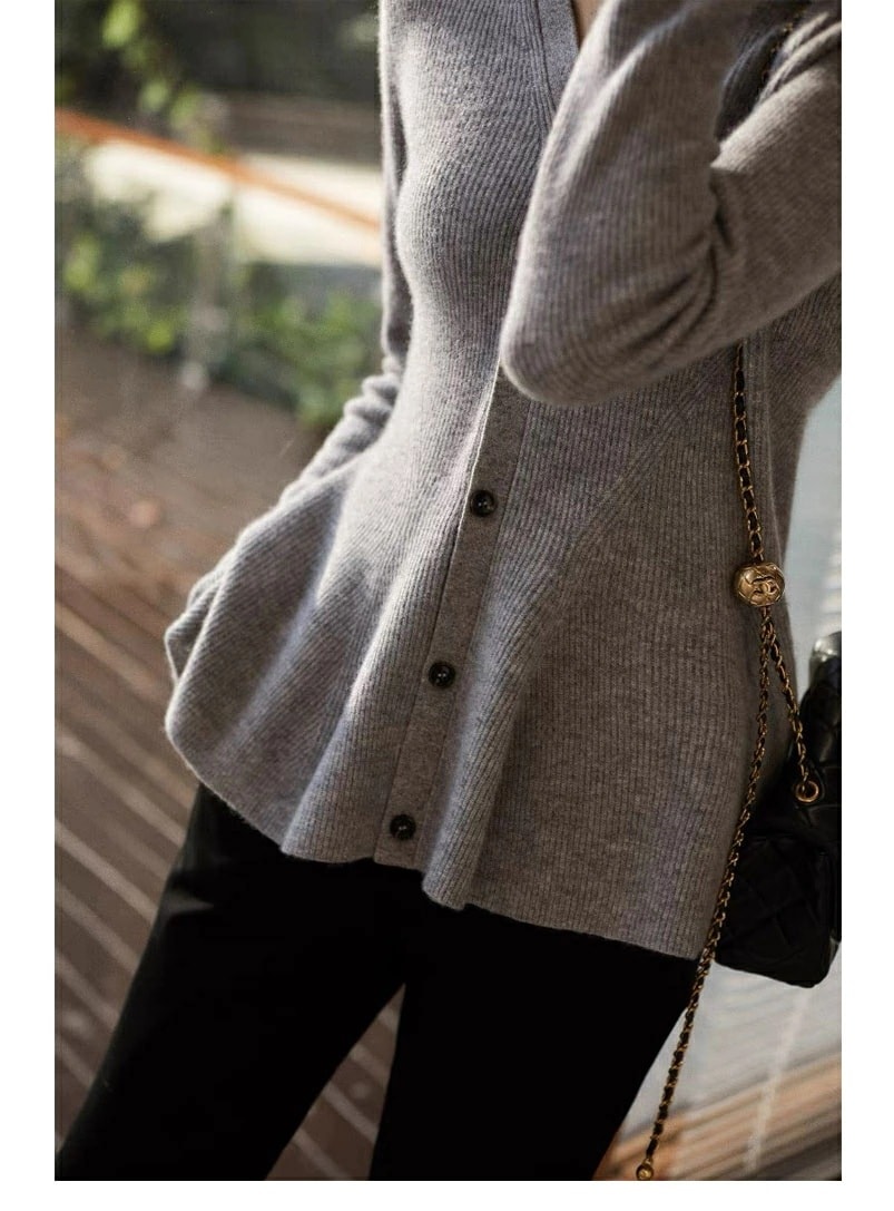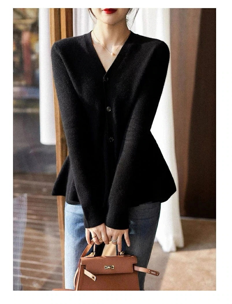 レディース トップス ニット ペプラムニットVネックカーディガン リブニット Vネック 無地ペプラムニットカーディガン 長袖 ニットカーディガン きれいめ 秋冬 秋 冬 軽い ゆったり 大人 二次会