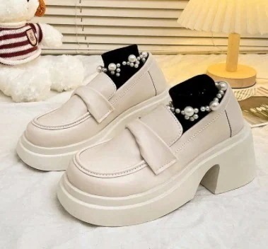 モカシン 厚底スモールレザーシューズ女性2025新しいレトロローファーシングルシューズ