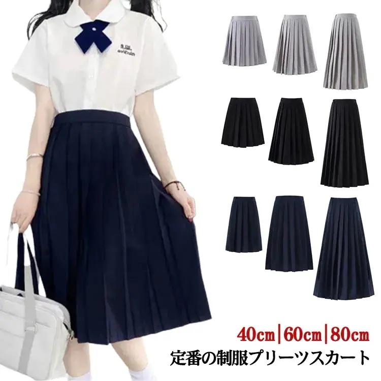 スクールスカート レディース プリーツスカート 40cm/60cm/80cm ミニ 膝丈 ミドル丈 ロングスカート フレアスカート スクールスカート 女子高校生 制服 スカート 無地 Aライン 定番