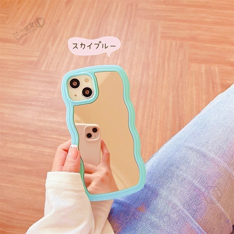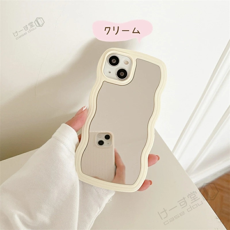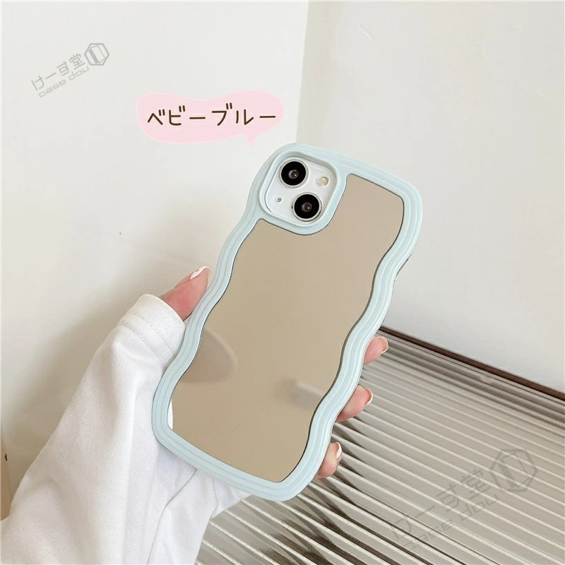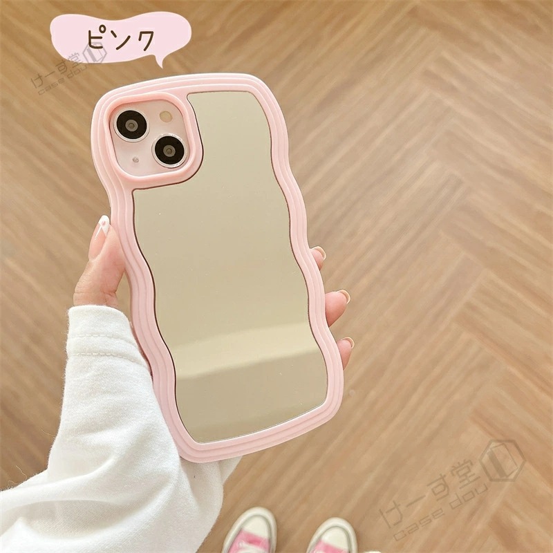 ミラー付き うねうねケース iPhone15 15pro ケース ミラーケース 鏡付き iPhone13 iPhone12 iPhone14 14pro スマホケース 韓国 シンプル iPhone11