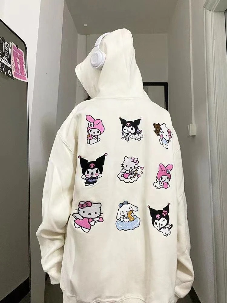 パーカー 可愛い ハローキティ クロミ マイメロディー 地雷系 フード付き トレーナー 長袖 ジップアップパーカー 韓国ファッション レディース アウター 秋