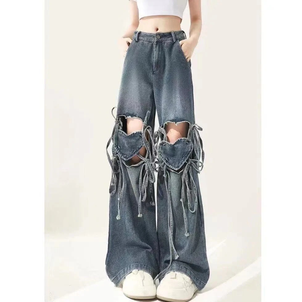 デニムパンツ 韓国ファッション ジーンズ レディース ゆったり ロングパンツ ストレートデニム ズボン 大きいサイズ 原宿系