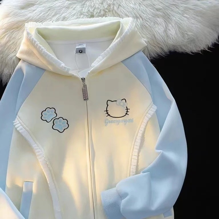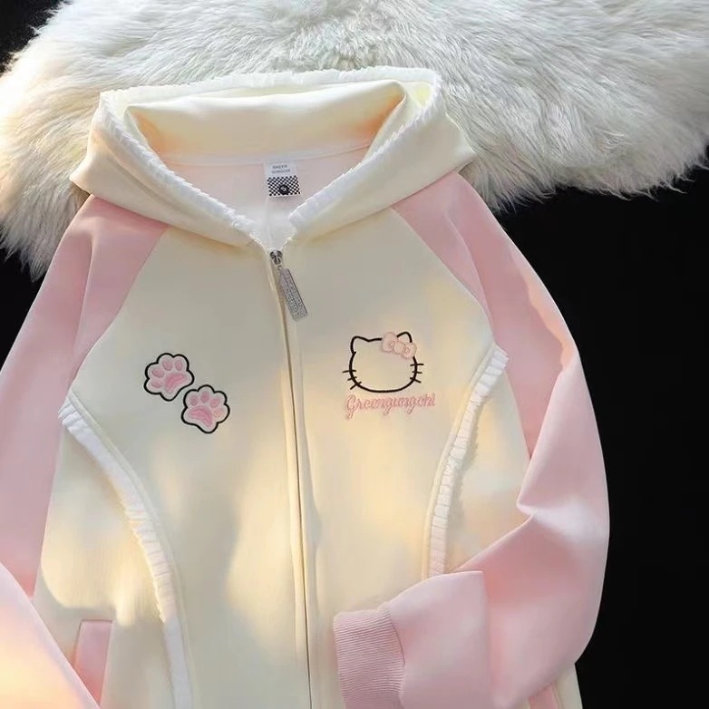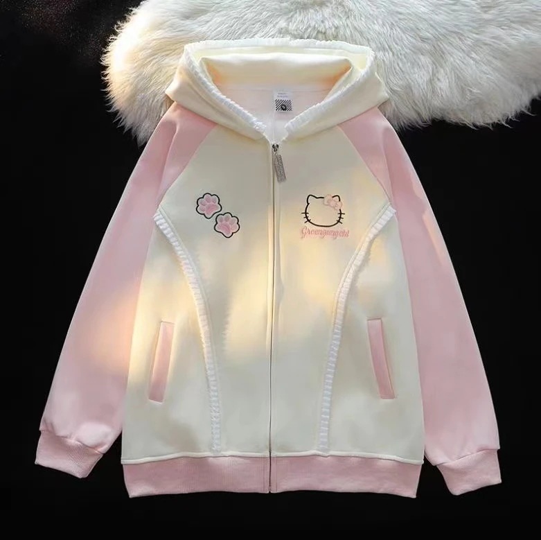 キティちゃん パーカー レディース ハローキティ 可愛い ジップアップパーカー フード付き 長袖 トレーナー 薄手/裏起毛 スウェット カジュアル 秋冬 アウター 大きいサイズ