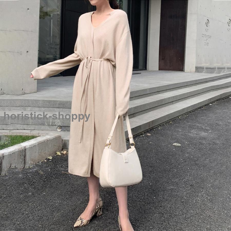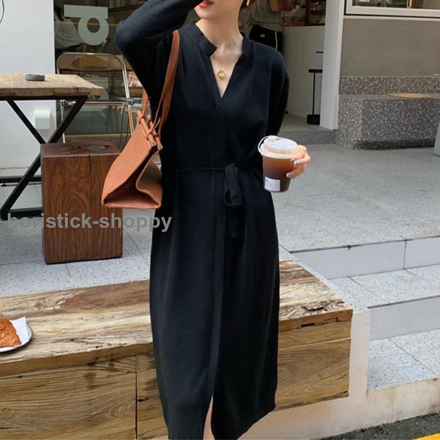キーネック ニットワンピース レディース セーターワンピース 暖かい ロングワンピ 秋冬 シンプル 上品 大人 おしゃれ