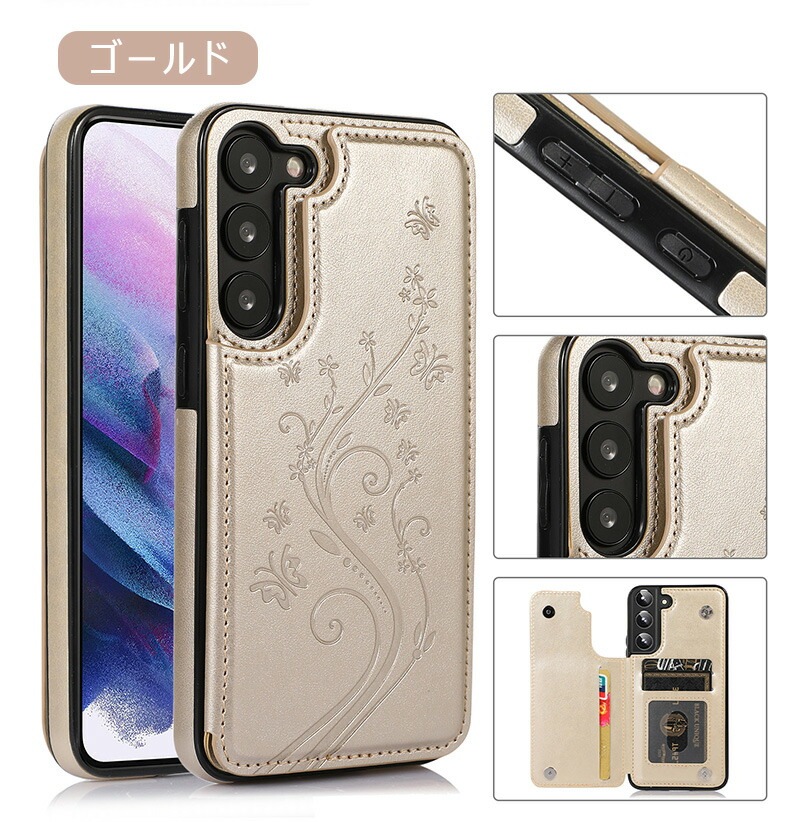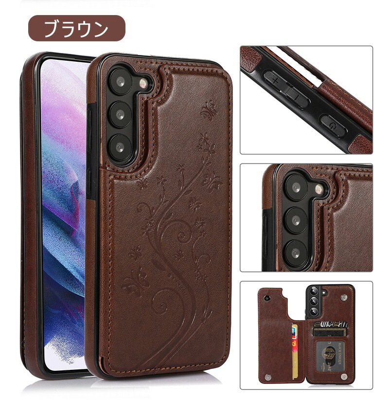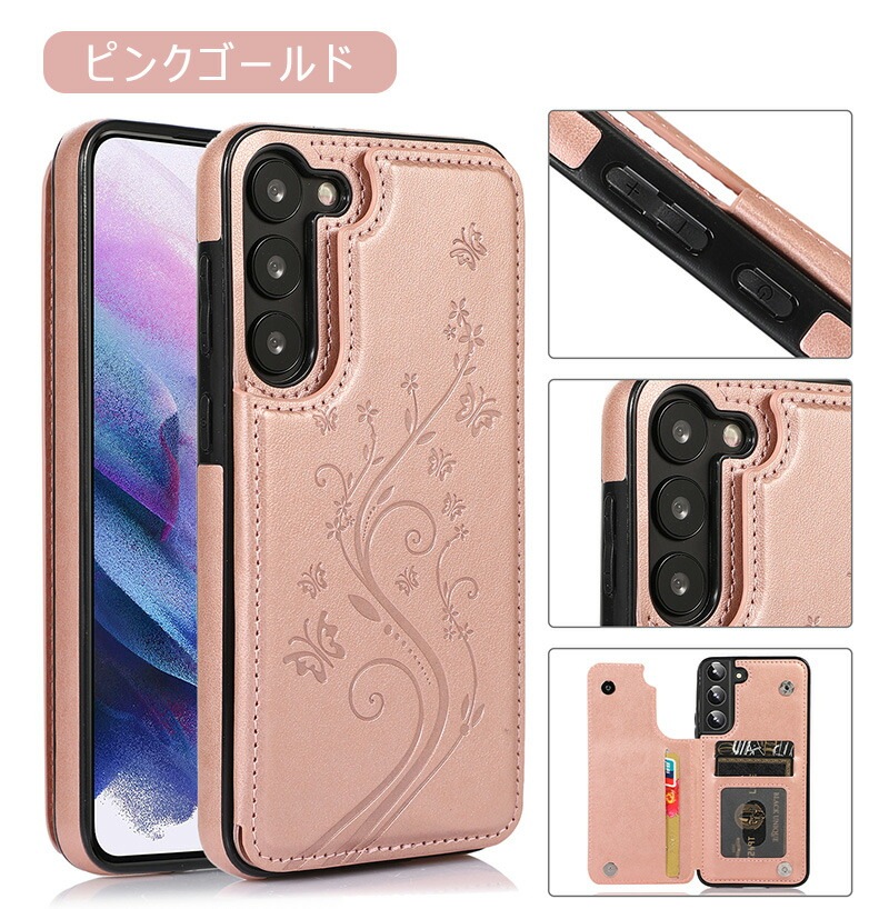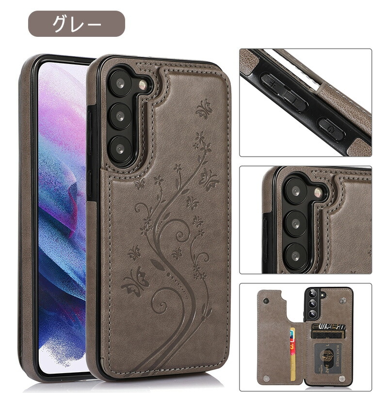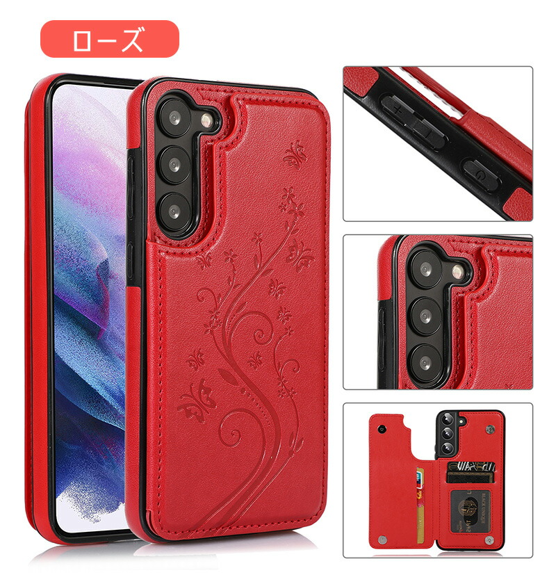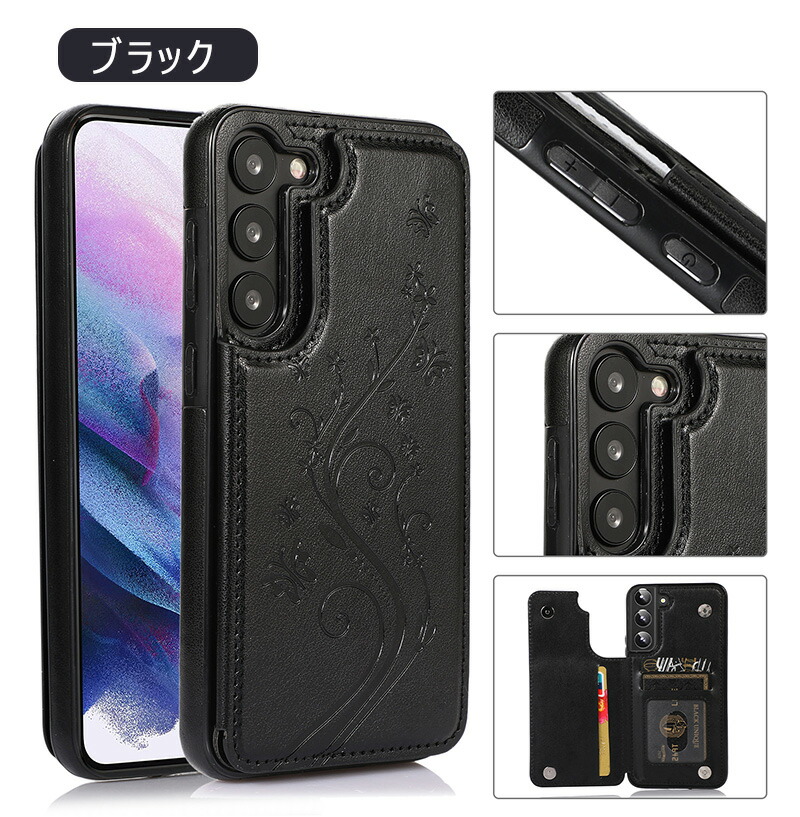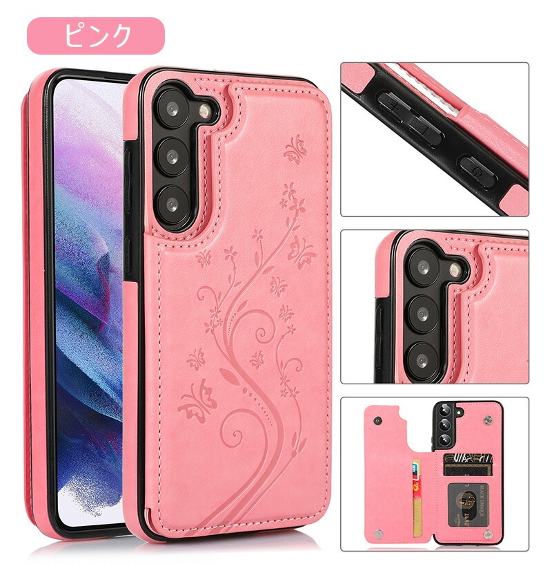Galaxy A55 5G ケース 背面手帳型 蝶々 花柄 レザー調 Galaxy S24 Ultra カードケース おしゃれ Galaxy S23 ケース 薄型 Galaxy A54 ケース