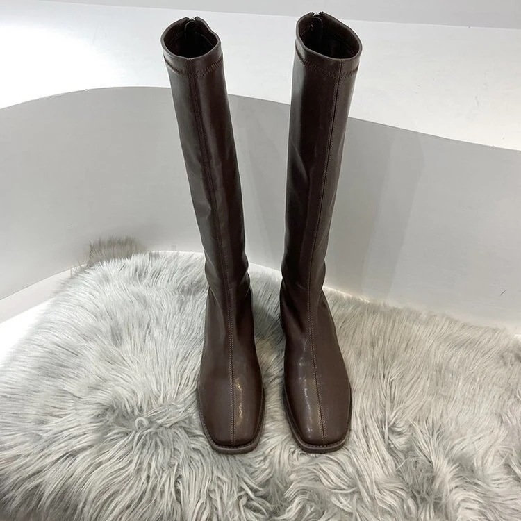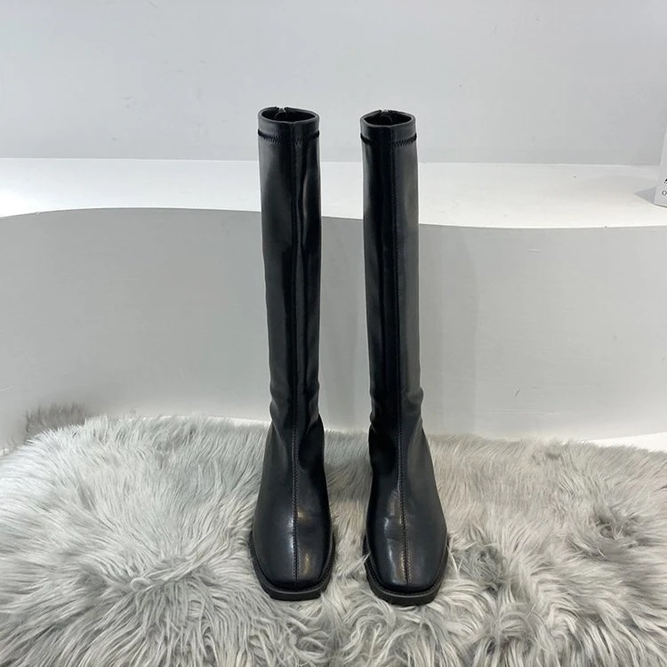 韩国 上新2024秋冬定番ロングブーツ太ヒール 美脚 舒适性 百掛け 騎士ブーツロングブーツが復活!ロングブーツが復活!ロングブーツ