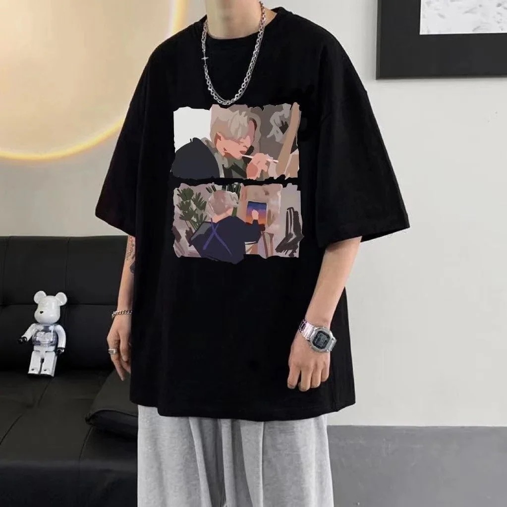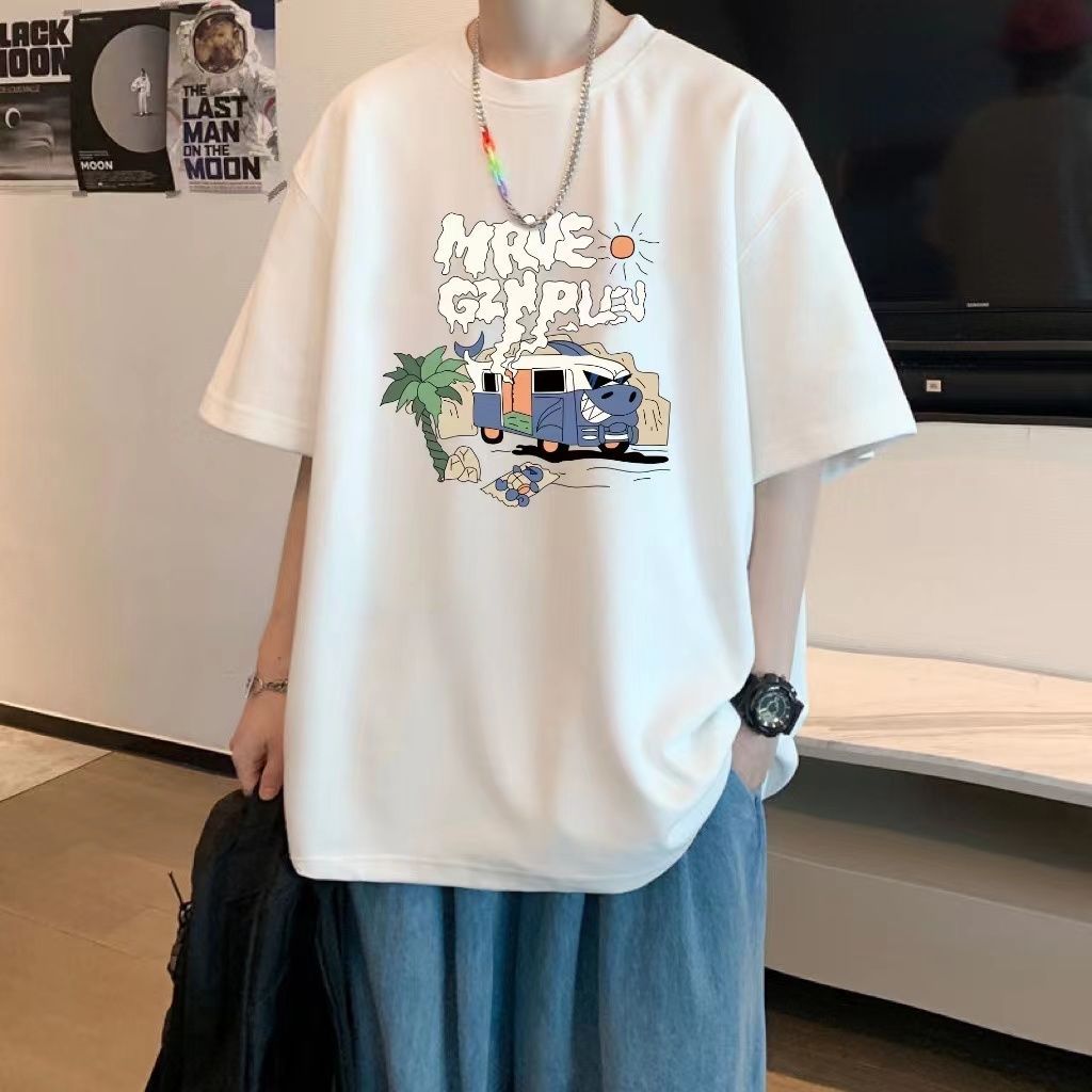 コットンTシャツ メンズ ゆったり 半袖 トップス サマー カジュアル プリントTシャツ ラウンドネック プルオーバー