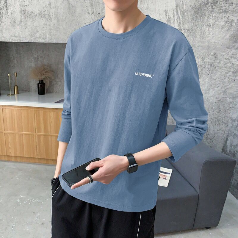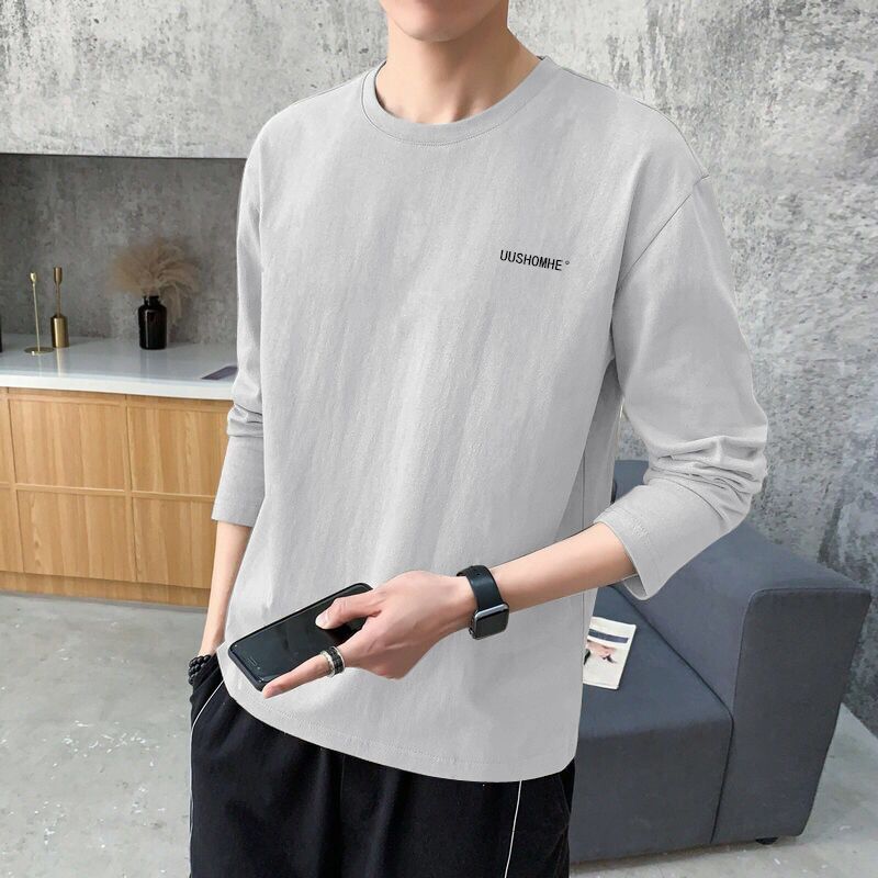 長袖Tシャツ メンズ トップス ゆったりトレンド カジュアル クルーネックインナー 無地トップス