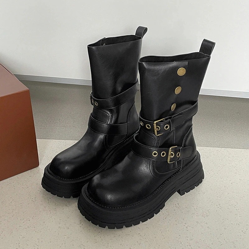 韓国ファッション チャンキーヒール厚底マーチンブーツ女性2024新しい春と秋のスリムな高さを高めるブーツ ショートブーツ