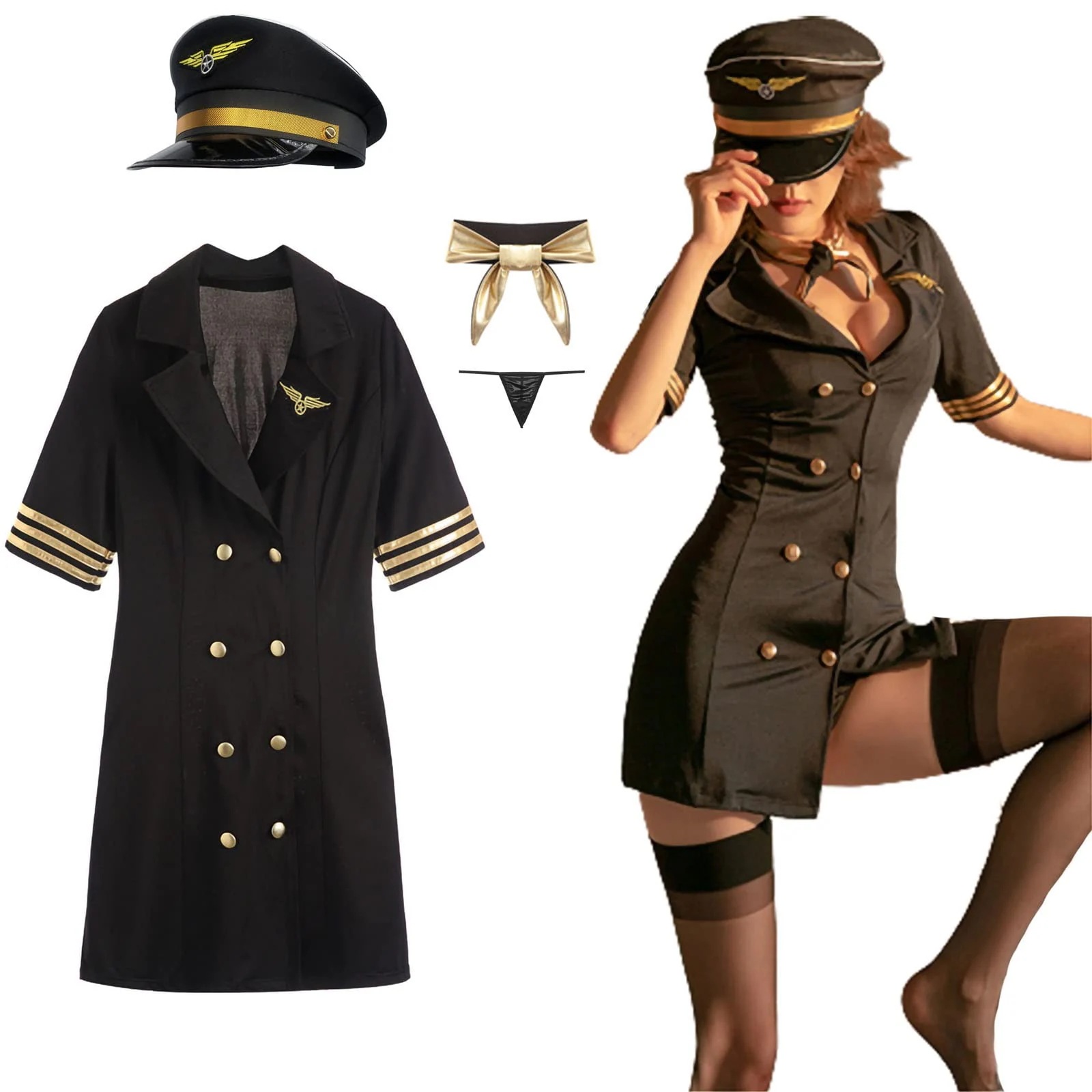 パイロットコスプレ CA パイロット制服 航空警官服 警察官 婦警 警備員 パイロット セクシー ランジェリー 過激 かわいい 可愛い 婦人警官 制服 衣装 4点セット パーティー 仮装 誘惑 ミニスカート 萌