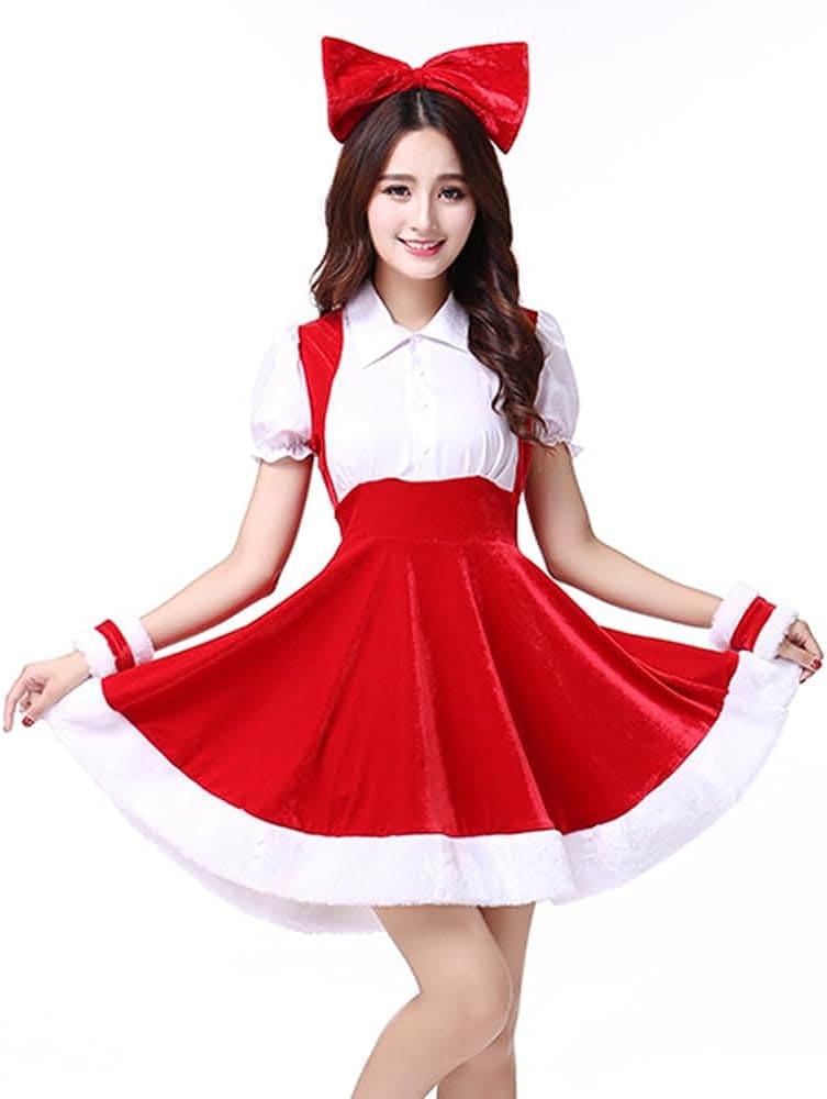 サンタ コスプレ レディース 赤白 ワンピース サンタガール 可愛い 女の子 メイド風 蝶結び クリスマス 衣装 3点セット 大人用 仮装 ふんわり クリスマス コスチューム 演出服 イベント パーテ