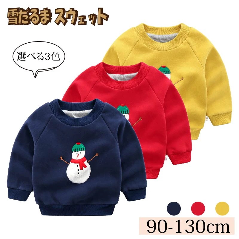 ユニセックス キッズ クリスマス 雪だるまパターン 刺繍 クルーネック プルオーバー / スウェット トレーナー 厚手 女の子 男の子 子供服 90 100 110 120 130 ブルー イエロー3