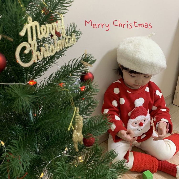 ベビー キッズ 子供服 男の子 女の子 男女兼用 2点セット 上下セット サンタ服 セットアップ クリスマス 衣装 ふわふわ イベント パーティ お誕生日 お宮参り 出産祝い プレゼント ドット30パ