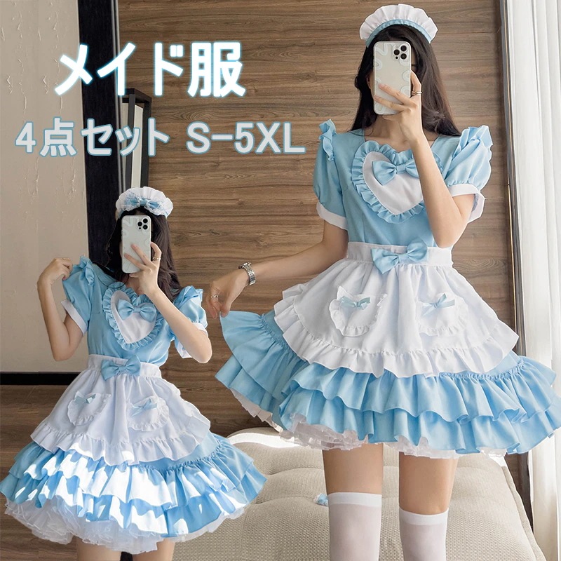 メイド服 コスプレ セクシー 可愛い メイド 仮装 レディース フリーサイズ ギフト 豪華セット 清楚 可憐 ウェイトレス レディース コスチューム カフェ イベント 学園祭 文化祭 余興 宴会30パ