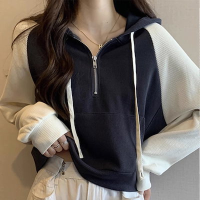 2024 春の新ショートコントラストカラー薄いトップルーズフード付き小さなステッチセータージャケット女性春秋