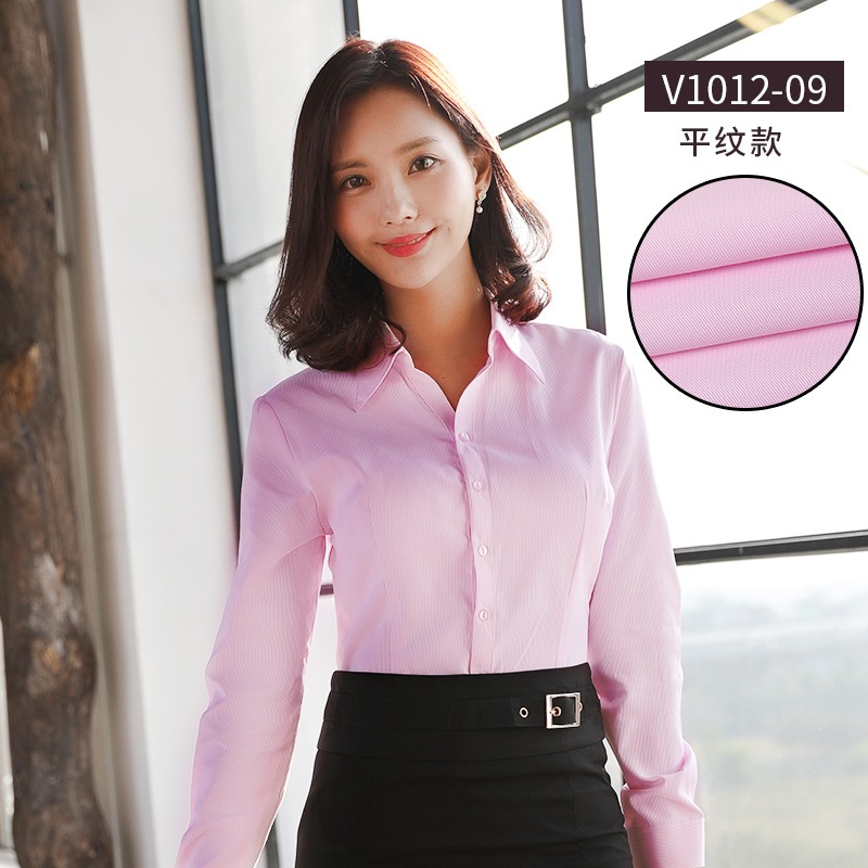 2024新作レディース長袖白シャツolスリムビジネスウェア面接作業服綿vネックシャツフォーマルカラー