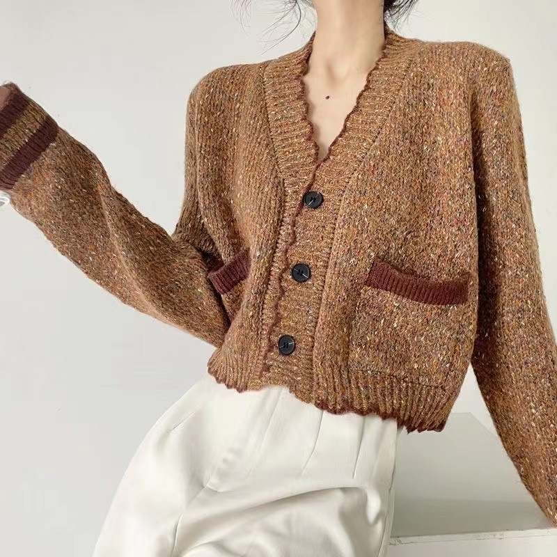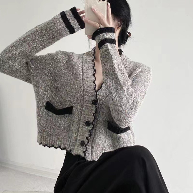 ニットカーディガン新型フランス式小香風vネック女性の小柄な短いセーターコート女性