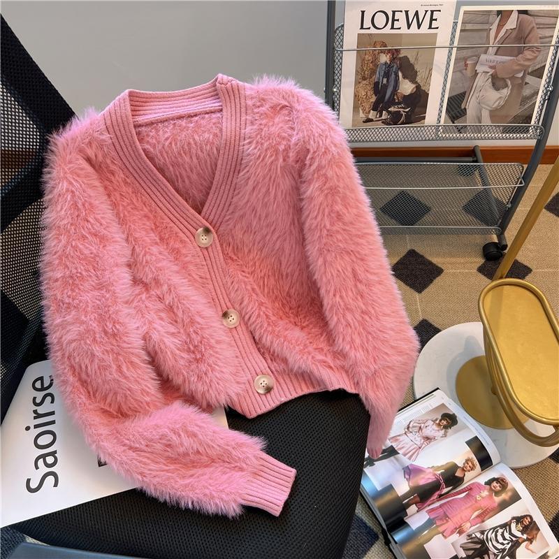 柔らかいモチモチの風はミンクのベルベットのコートの秋冬の超仙乳白ニットのカーディガンの厚い襟の怠惰なセーターの上着を真似ている