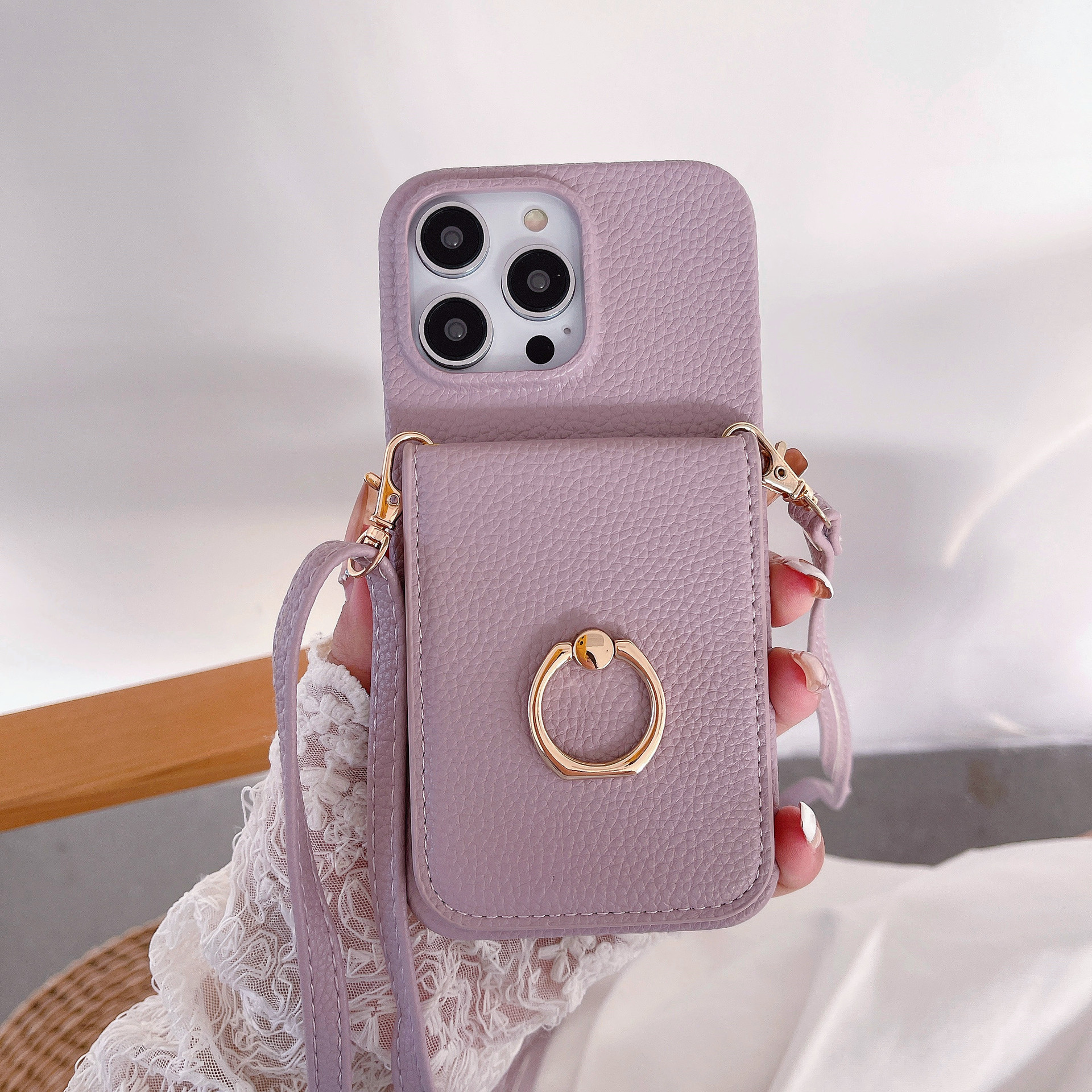 iPhone 16Pro ケース カード収納 レザーケース ショルダー 肩掛け 斜め掛け iPhone15 ケース リング付き スタンド機能 人気 携帯ケース 耐衝撃 落下防止 高級感 鏡 ミラー付き