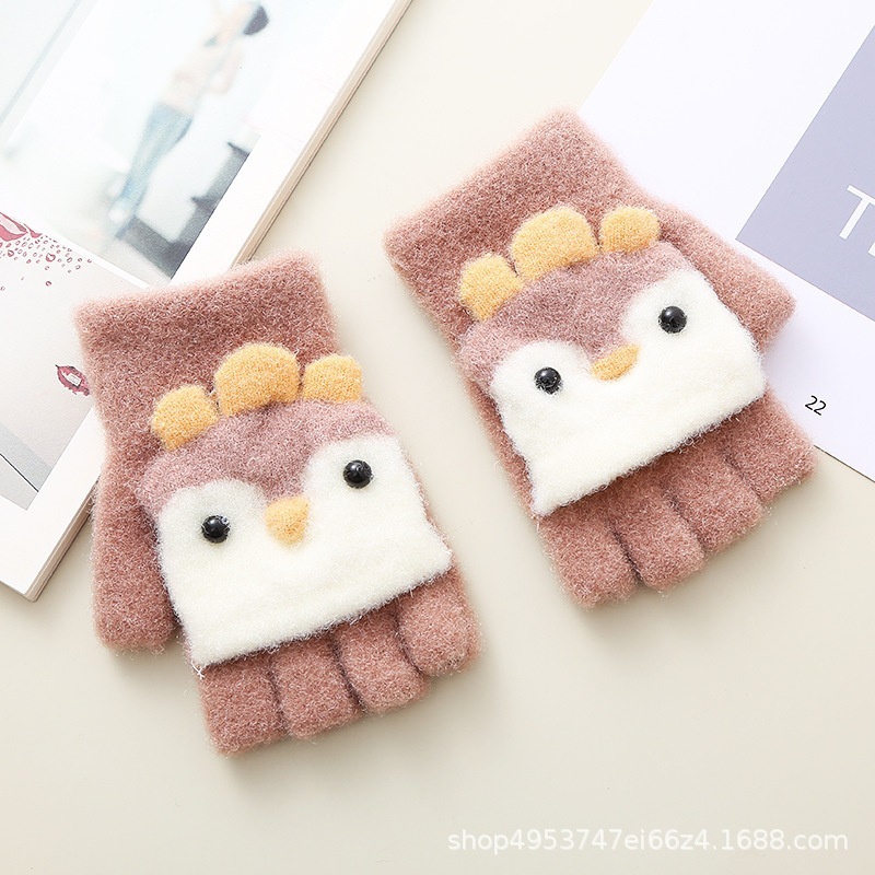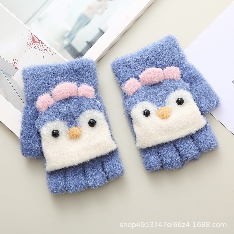 冬 子供用 ファッション 手袋 ペンギン フリップ ハーフフィンガー グローブ かわいい かわいい ベビー 暖かい 学生 筆記用手袋