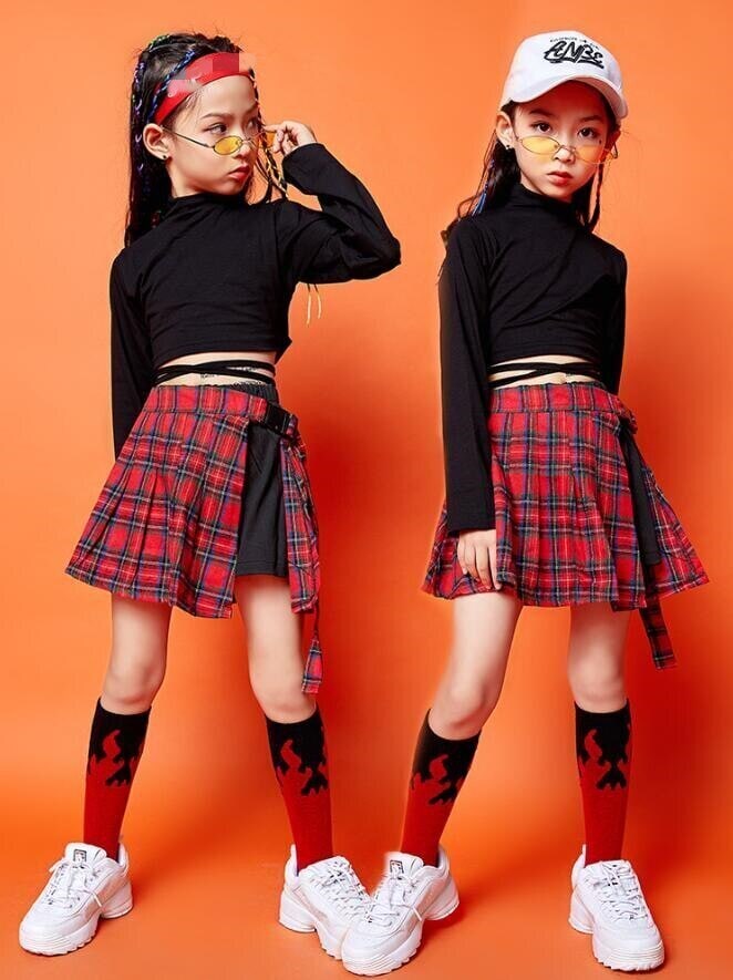 【3日出荷】女の子 ダンス衣装 チャック柄 スカート イレギュラー ミドリフ 長袖Tシャツ 韓国 子供服