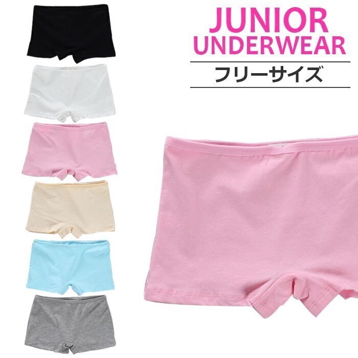 【3日出荷】小学生ボクサーパンツ5カラーキッズフリーサイズ女児ショーツ綿素材で気持ちいい肌触り女の子ジュニア