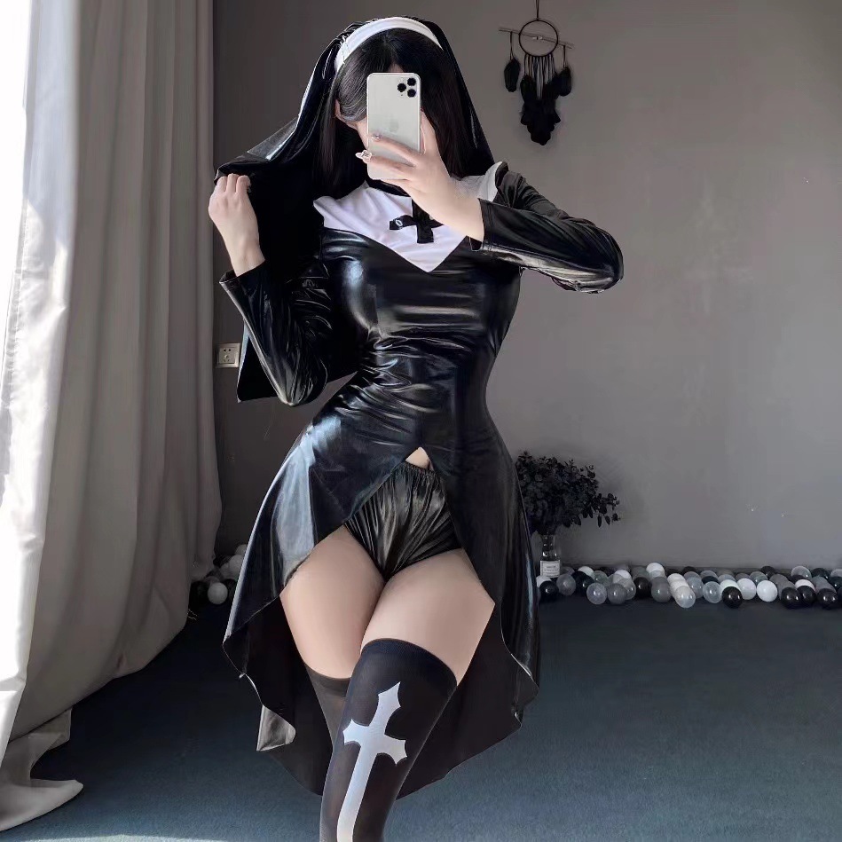 Mixmind4点セット(服+ベール+ソックス+パンツ)ハロウイン修道服メイドさんピンクコスプレかわいいベビードール レディース セクシーランジェリー シースルーベビードール ハーフスリップ